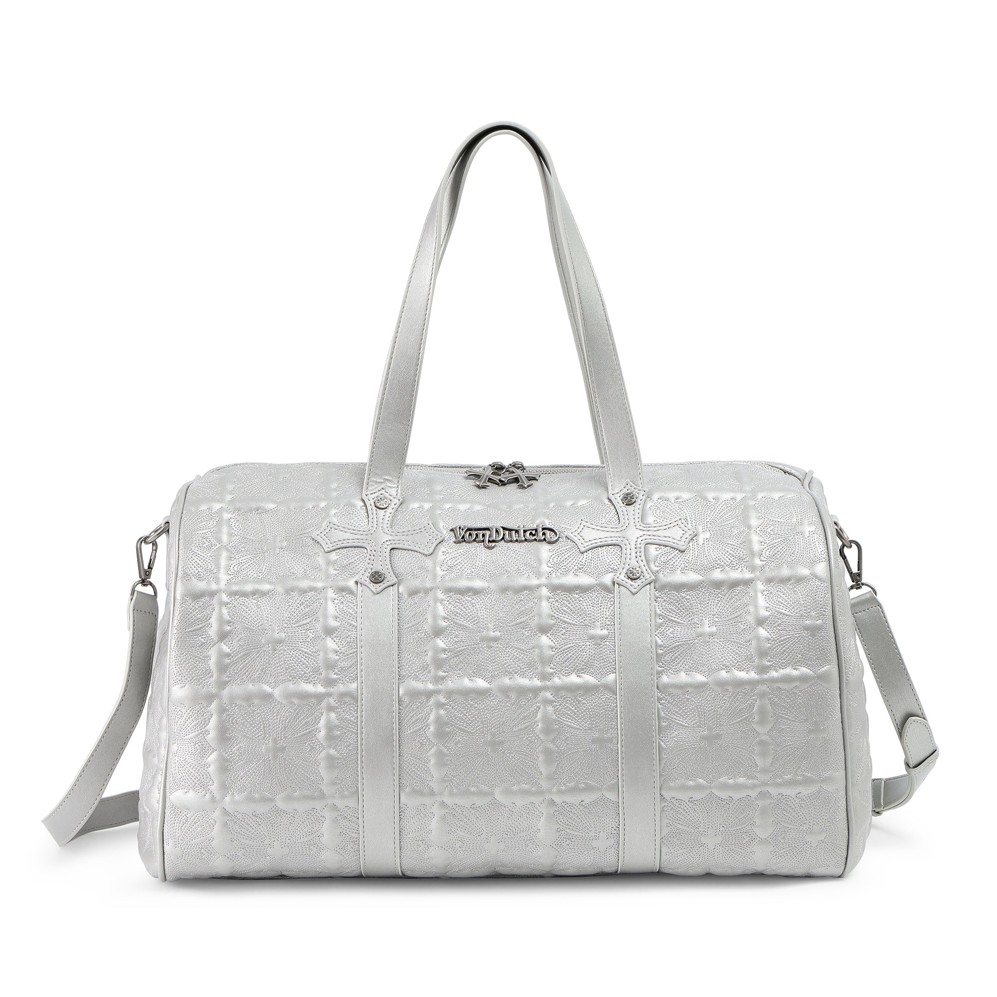 | Color | Embroidered Chopper Duffle Bag – Silver, Embroidered Chopper Duffle Bag – Black, Embroidered Chopper Duffle Bag – Brown |
