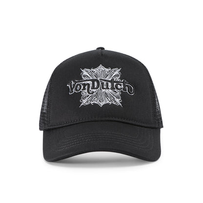 Embroidered Von Dutch Chopper Cross logo in Black with White outline