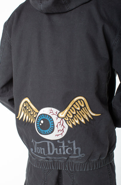 Serve streetwear in a zip up invaders hoodie, that features printed graphics in the front and back. Match it with the coordinated Hunter Double Cargo Pant.