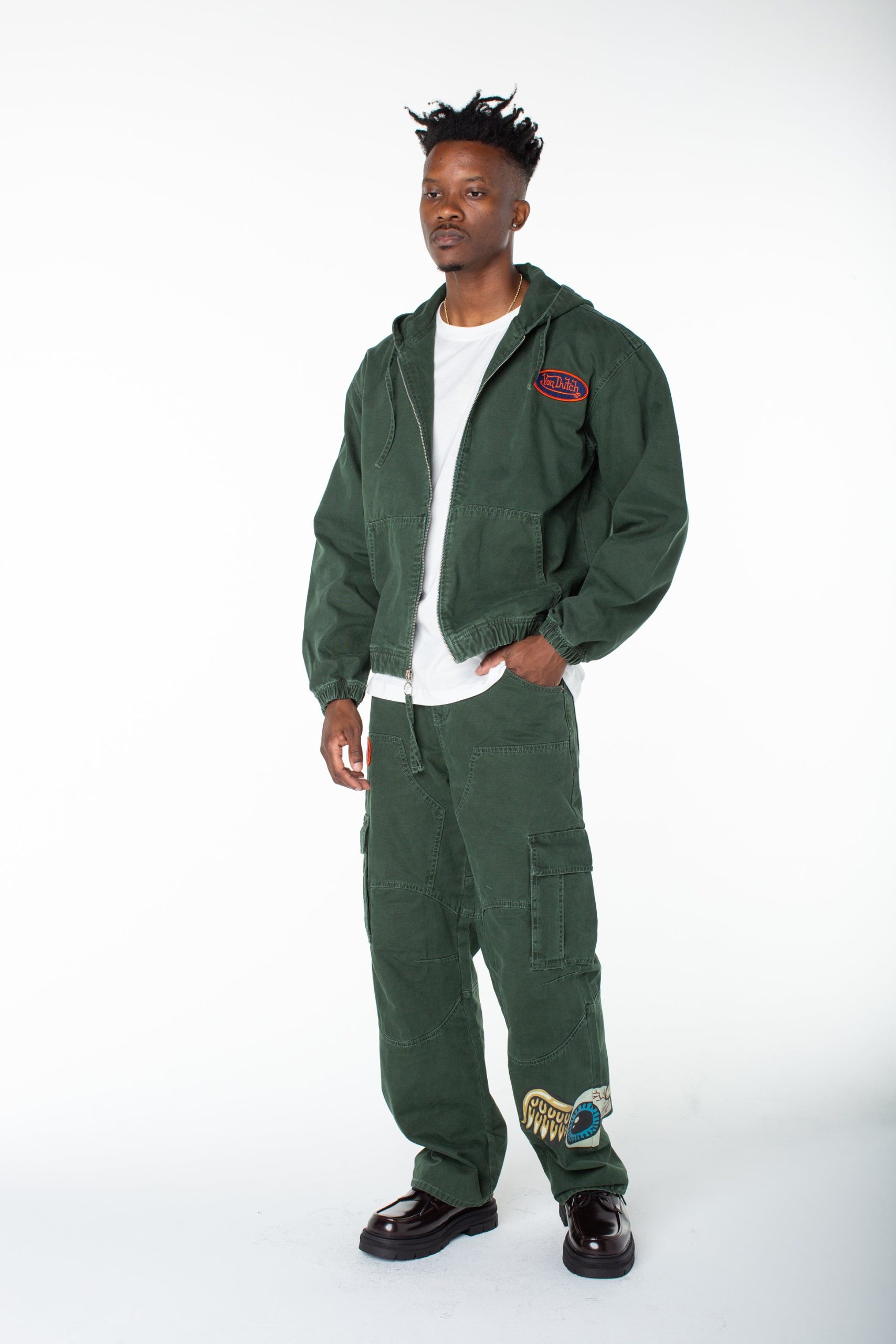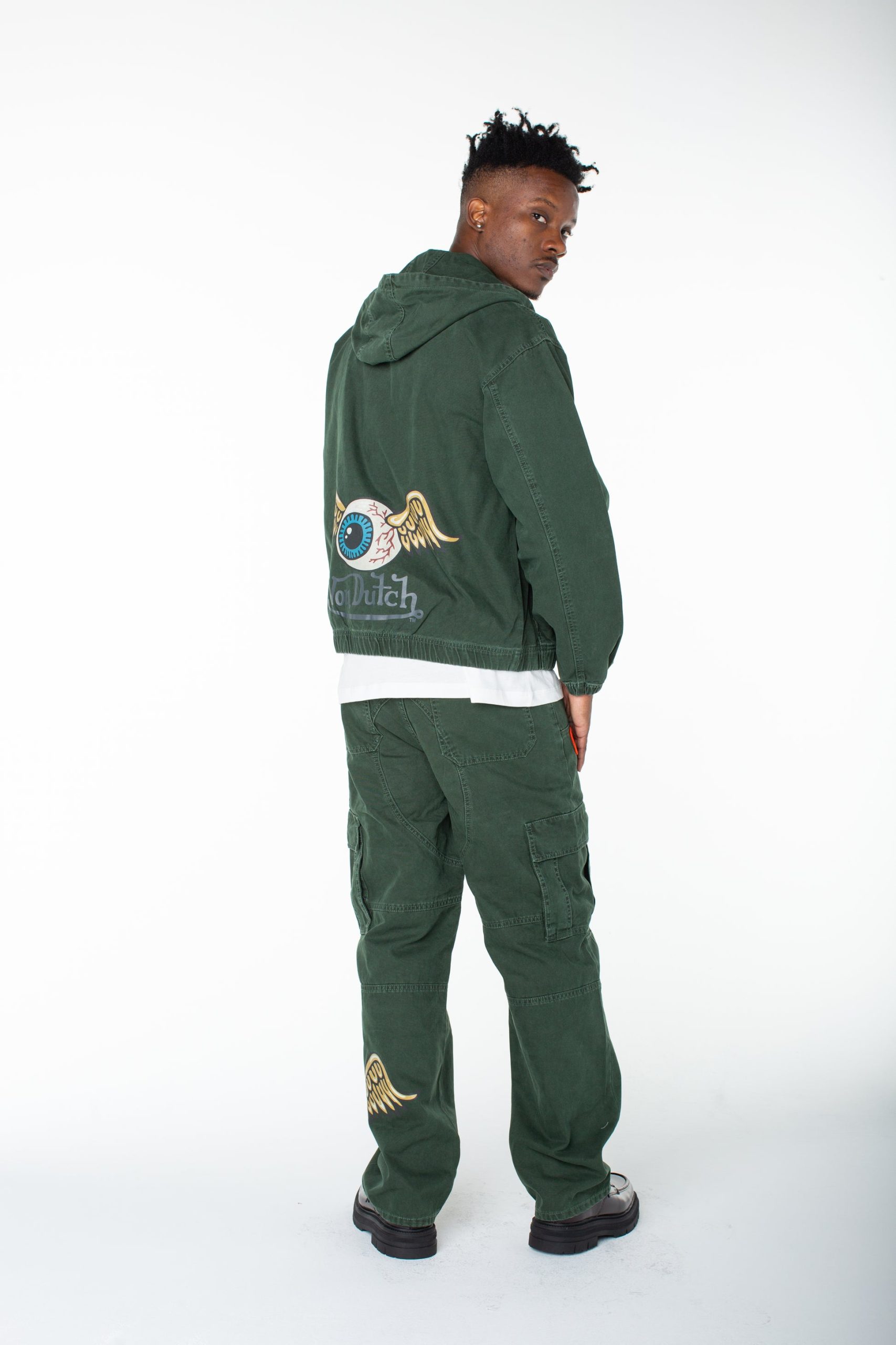 Serve streetwear in a zip up invaders hoodie, that features printed graphics in the front and back. Match it with the coordinated Hunter Double Cargo Pant.