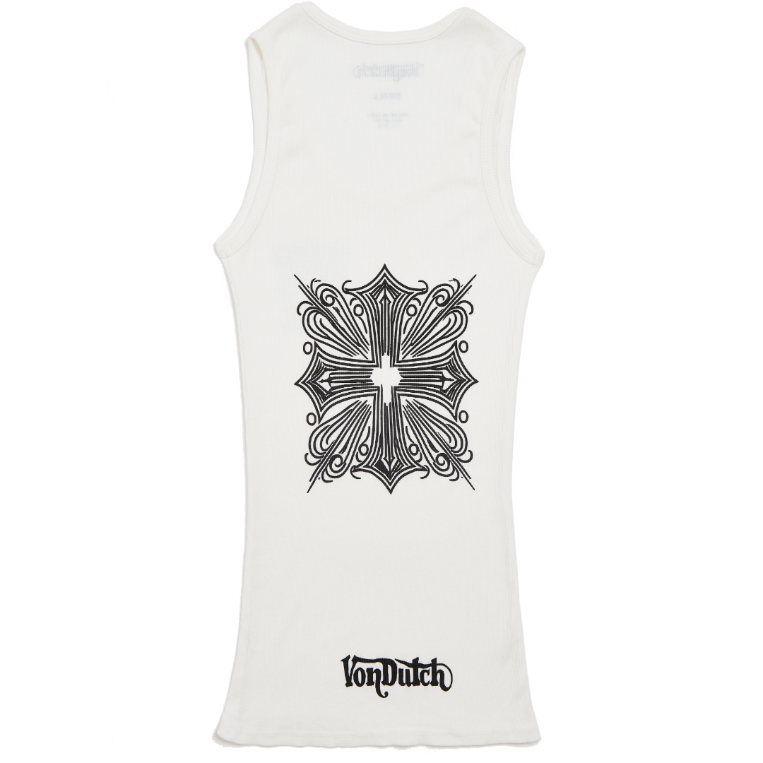 Von Dutch Tank Top. Made from soft stretch cotton, this white tank features a chopper crest on the front and back.?