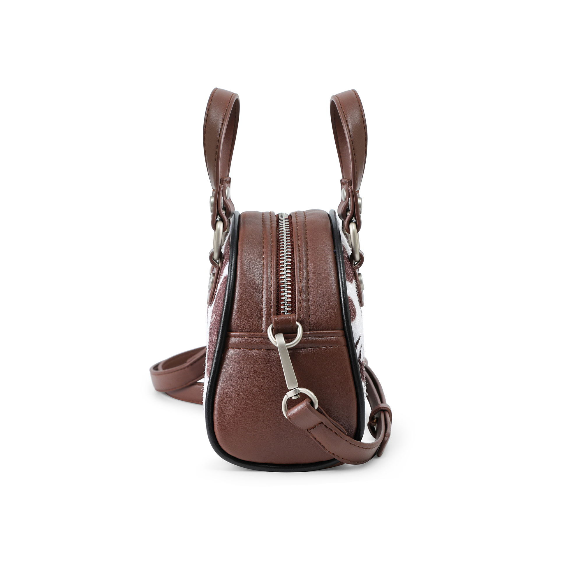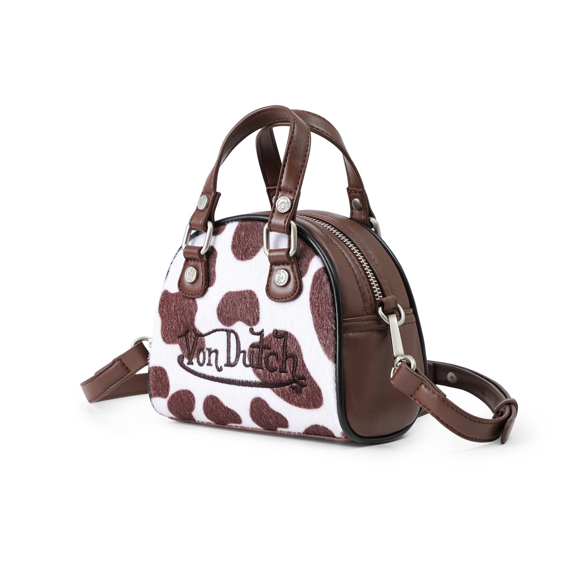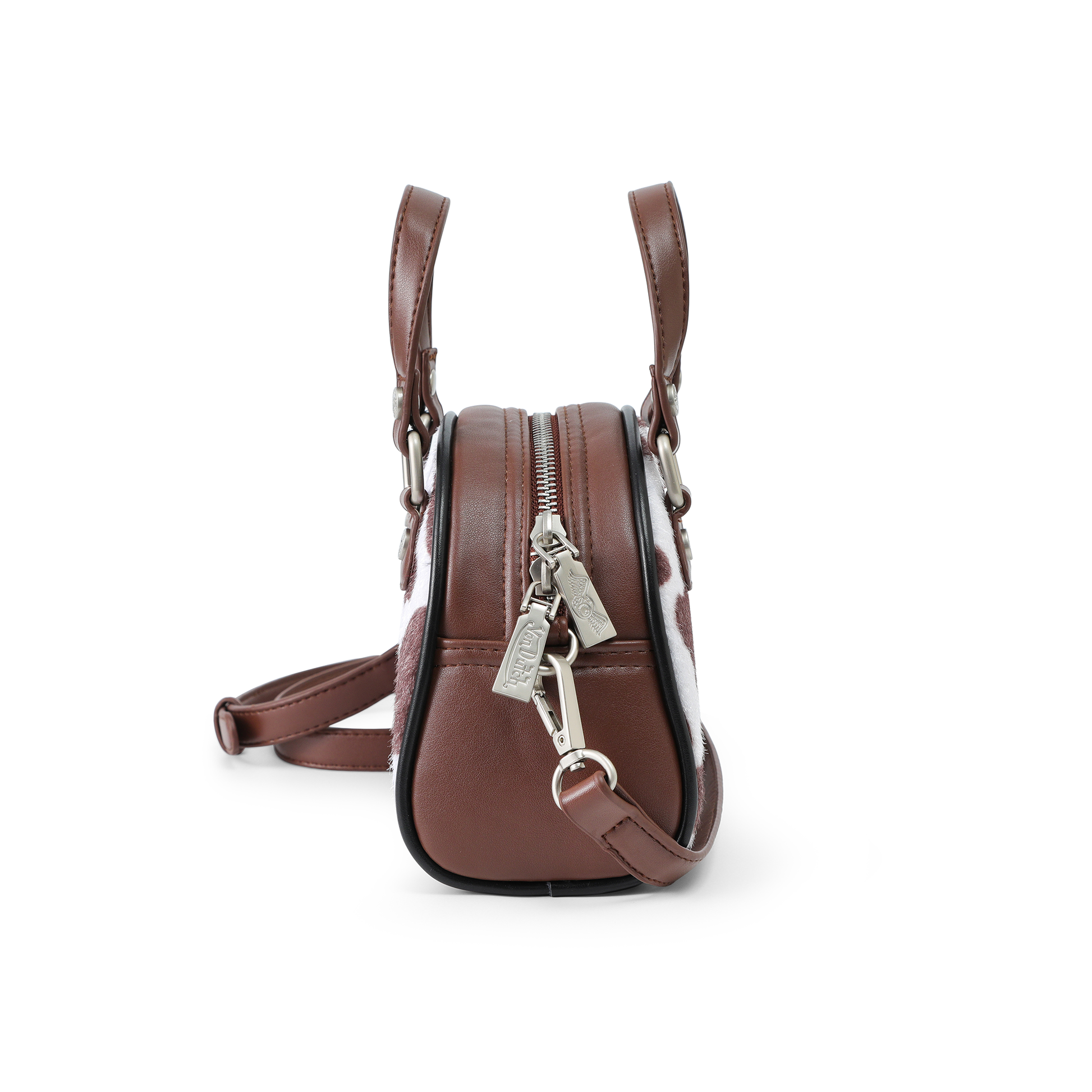 MINI COW PRINT BOWLING BAG – BROWN & WHITE