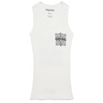 Von Dutch Tank Top. Made from soft stretch cotton, this white tank features a chopper crest on the front and back.?