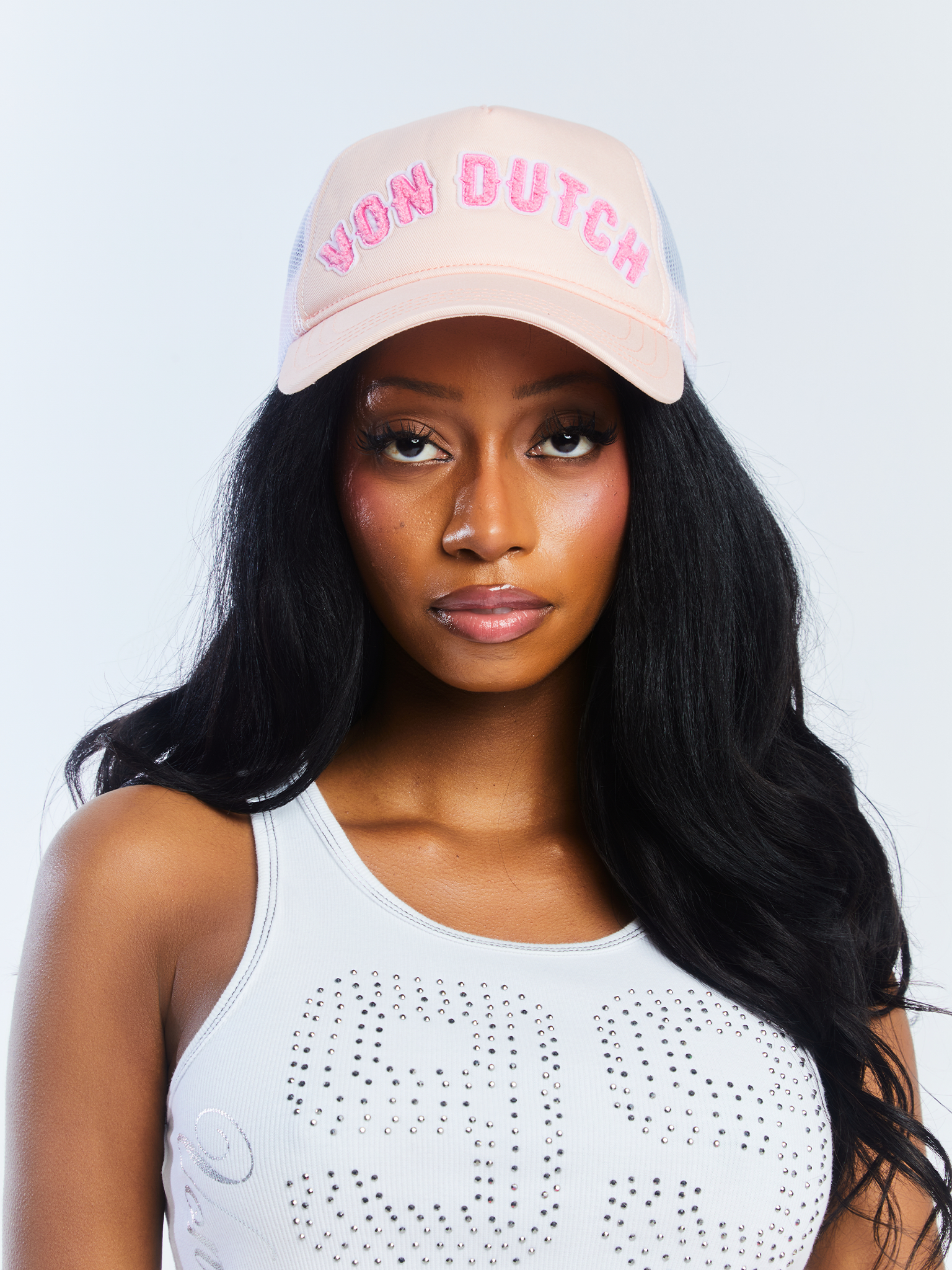 The Von Dutch Snap back Trucker Hat features a distinctive terry cloth logo patches, adding a unique texture and style to your look. With its classic design, this hat is perfect for any casual outfit.